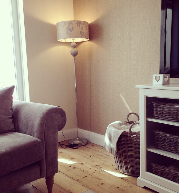 This large wicker storage basket is from Thomas & Lucia (local to me however they do have a website & deliver – Grey rattan round log basket – £36.00) which houses blankets to snuggle up but would be brilliant toy storage, then i’ve popped a blanket over the top to cover the contents as well as add style. This blanket is from Laura Ashley – Cranbourne natural wool throw £40.50. Floor lamp from the Range.