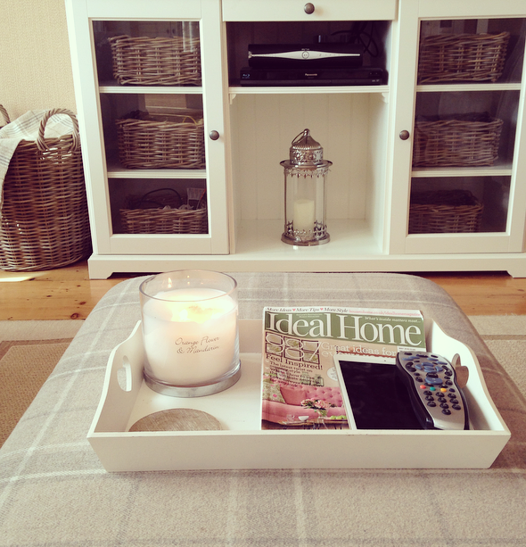 The TV cabinet is from Ikea (Liatorp £225) & I absolutely love it. It’s a great height for stopping children from watching TV about 5cm from the screen & damaging their eyesight as well as not being too high so you get a bad neck when sat on the sofa’s. It’s also brilliant for storage. We bought 6x wicker baskets from Ikea to keep things pretty yet organised too. The lantern is from The Range.