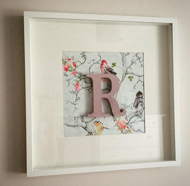 @lolaslittlepalace – “I found your tutorial really easy to follow. I ordered the letters from the same eBay seller you used, although I didn’t get a chance to get to IKEA this weekend so used some different frames from Hobbycraft which didn’t have a mount and I’m contemplating whether to buy some to add it or leave as is…! I used grey fabric as the background simply because I had some spare fabric which was the right colour so thought I may as well use it up and that turned out well as no paint drying time for that bit 🙂