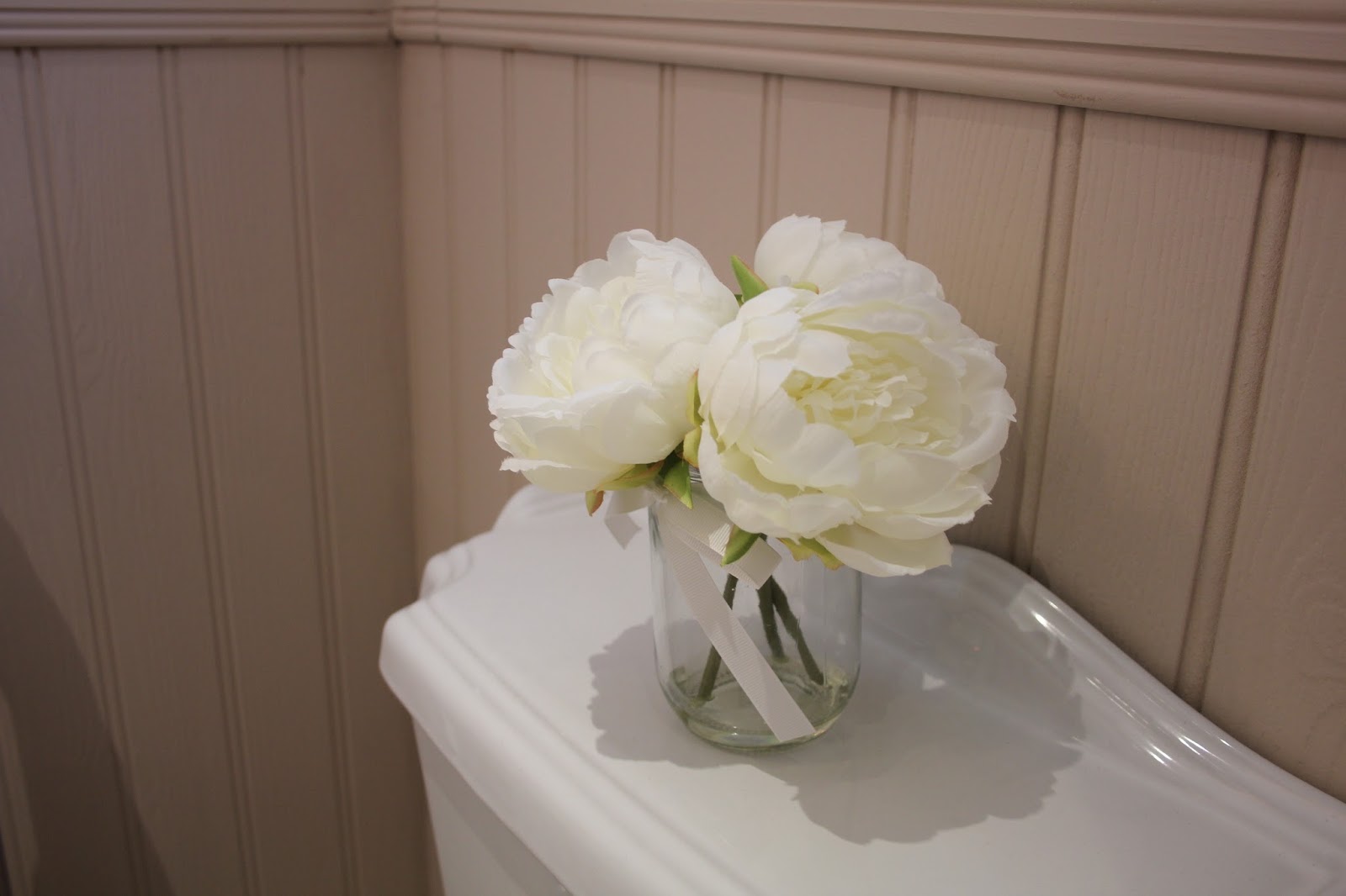 Accessorise with flowers, either real (humid loving orchids always do really well in bathrooms) or fake. I have an artificial peony set which was £10 from next & comes in cream or lilac.