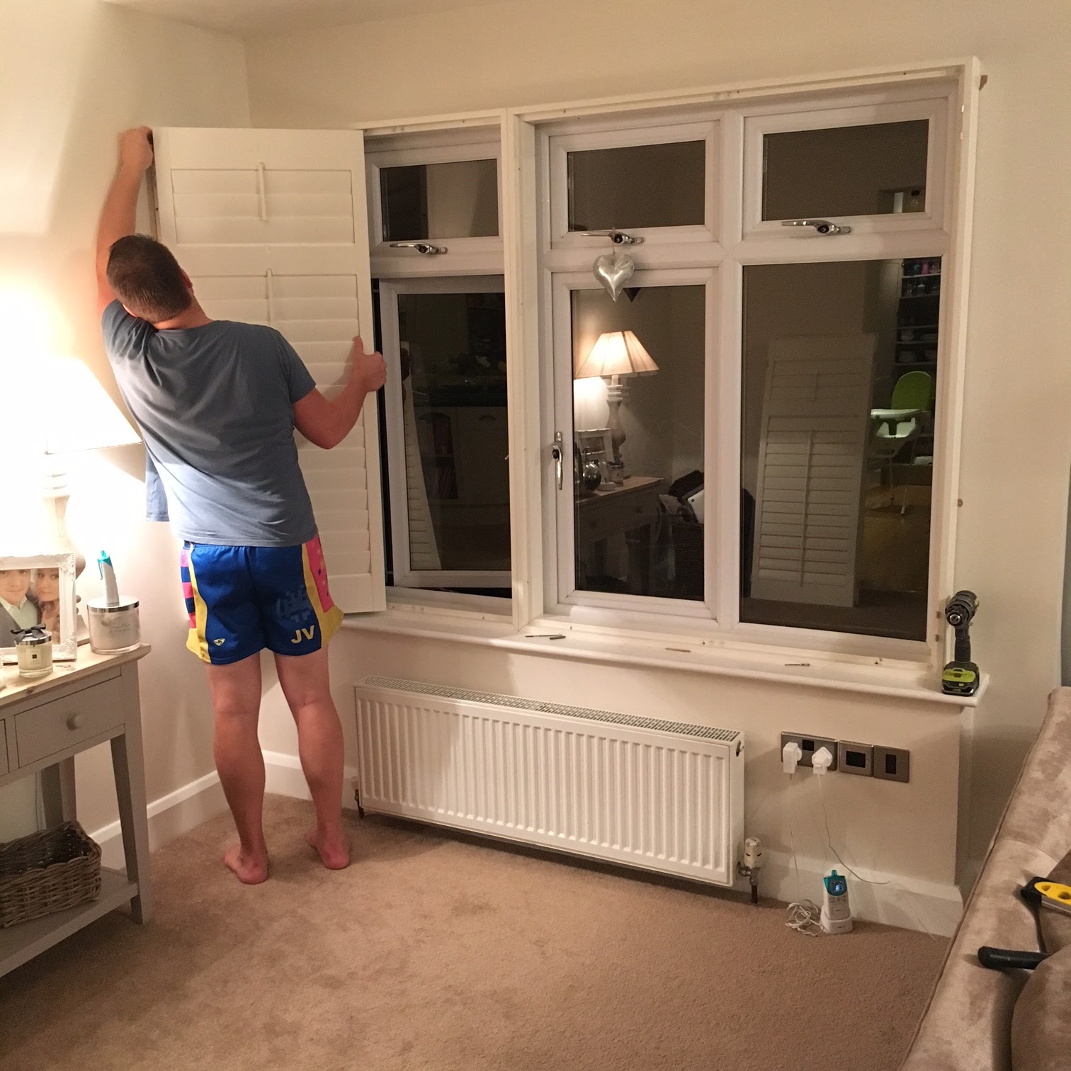 They were delivered yesterday afternoon & so I begged my husband to put them up for me last night (well I had been waiting 7 weeks already…). I expected him to just get the frame up on one side that evening but after 3 hours we sat back & admired both of our new shutters.
