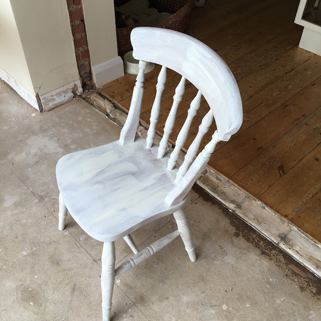 For the chairs, I first started by giving them a quick light sand which then prepares the wood ready for the paint to stick. I then gave them a coat of good quality acrylic primer & undercoat, it’s really important to not go for a cheap one as you’ll find the orange grinning through.