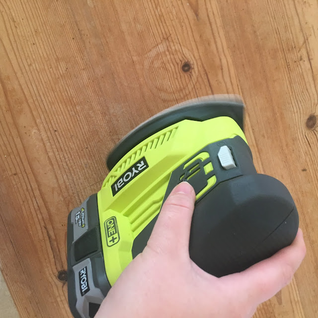 Sanding it was relatively easy however if you’ve got layer upon layer of varnish on it from years of use/multiple owners (the joys of ‘preloved’!) then it may take a bit of elbow grease. I used my Ryobi palm sander.